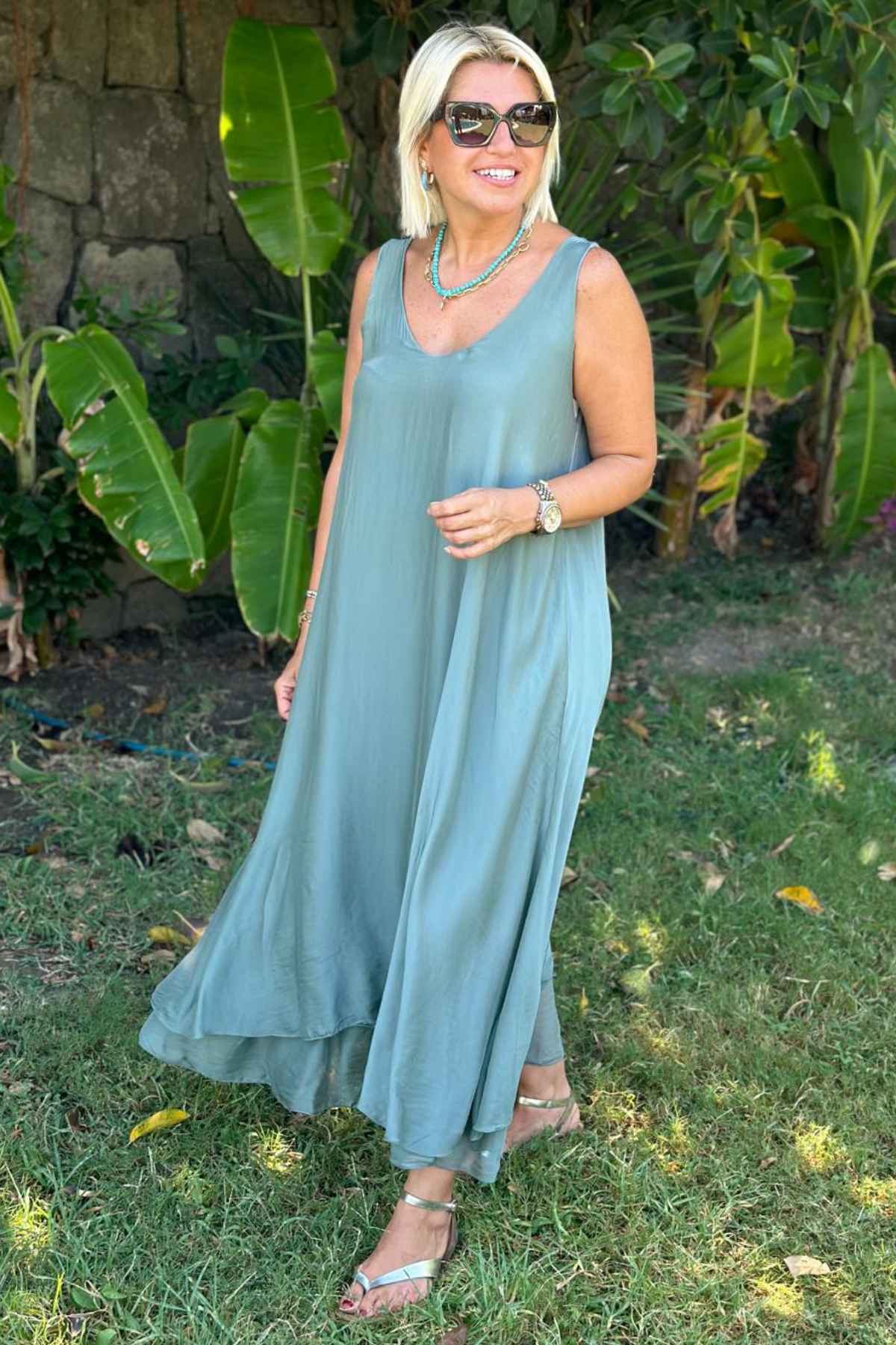 Haki Kolsuz İçi Astarlı İpek Şifon ElbiseUK2232121292-HAKI-STD