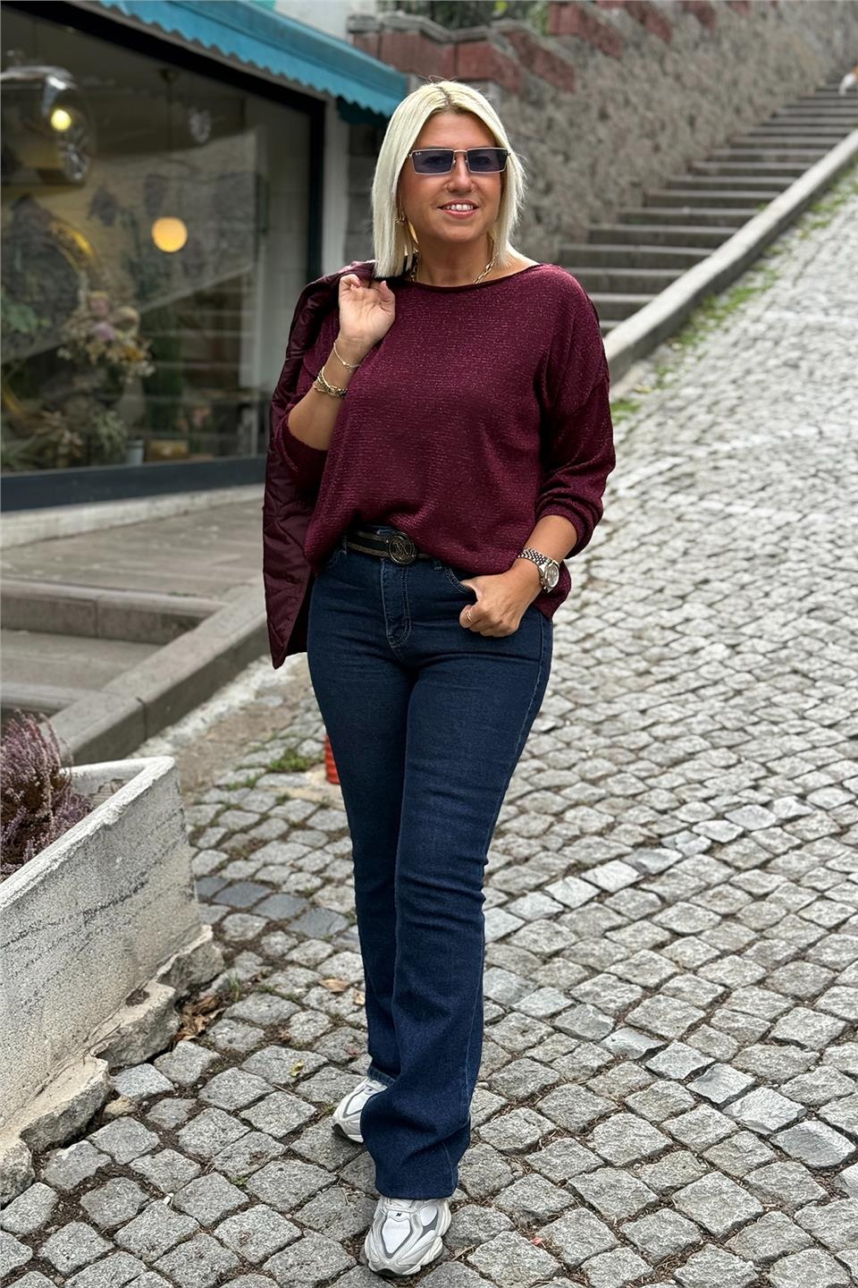 Mavi Yüksek Bel İspanyol Paça Jean (AJNS2501220-MAVI-36)