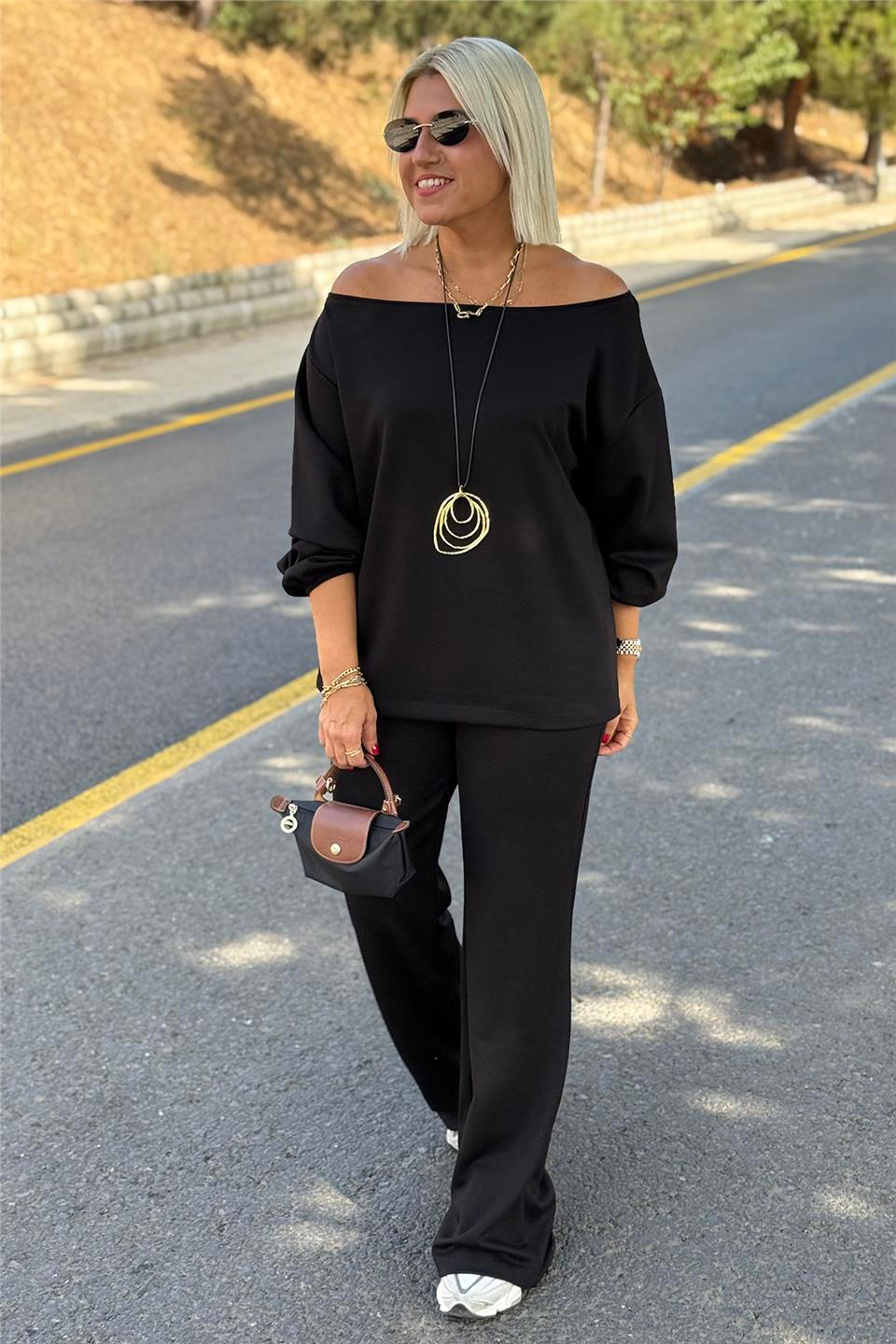 Siyah Düşük Omuz İspanyol Paça Modal Takım Beden : M /42 L/44 Xl/46 2xl /48 3XL 50/4xl Beden ölçüsü :lycralı esnektir 42 beden göğüs 118 cm boy 62 cm alt bel 100 cm basen 114 cm boy 109 cm / 44 göğüs 125 cm boy 62 cm alt bel 104 cm basen 118 cm boy 109 cm / 46 beden göğüs 130 cm boy 64 cm alt